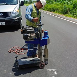- Extracción de Núcleos de asfalto (espesores y % de compactación).